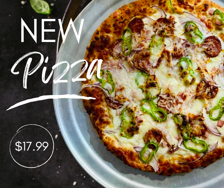 Hungarian-style pizza: $17.99 (12-inch pizza with Hungarian dry sausage (Gyulai), smoked pork loin, pepper, red onion, and cheese.)