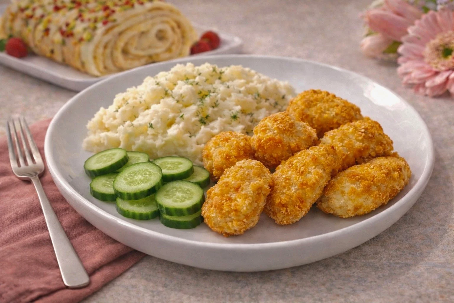 For our Mother’s Day Lunch, we’ve thoughtfully created a dedicated kids’ menu designed to be simple, delicious, and made with the same care and quality as everything we serve. A comforting combination of creamy mashed potatoes, crispy chicken nuggets, and fresh cucumbers — a meal kids genuinely enjoy.
