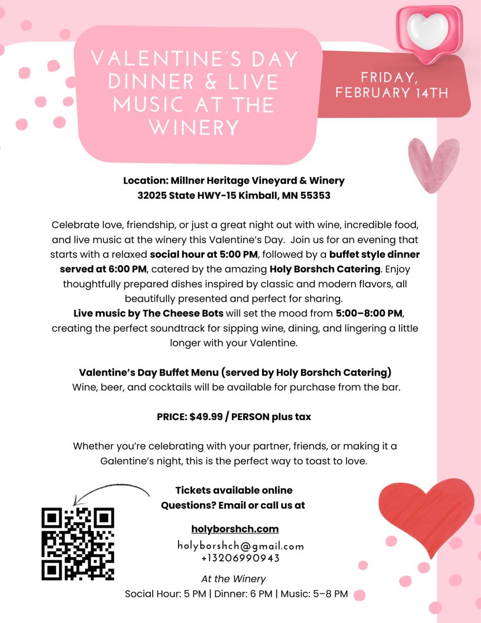 Millner Heritage Winery & Cidery is located in Kimball, MN. Home of the best vineyard and winery tours in Minnesota! We are also self proclaimed as #TheFunWinery, but you will find that our guests would agree hands down! Come in to enjoy fabulous Minnesota wines and ciders as well as enjoy entertainment from our Familia singing songs to you from behind the bar! Education, entertainment, and a joy-filled atmosphere is what we are all about!